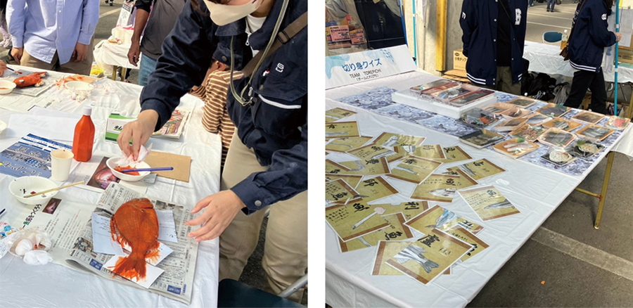 魚拓体験や切り身クイズ、耳石さがしなどの体験学習がいっぱい!昨年よりも出店数も増やしております!